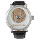 Uhr, Vintage Männeruhr mit schwarzem Lederarmband