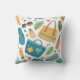 Vibrant seamless summer pattern throw pillow featuring straw hats, sunglasses, tote bags, sunscreen, flip flops, tropical leaves, and flowers on a clean white background. Ideal for beach lovers, vacation fans, tropical style enthusiasts, and anyone who loves sunny summer aesthetics.