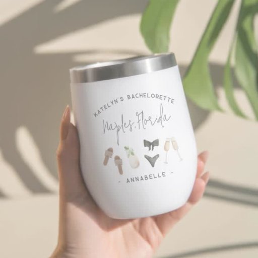 Beginnen Sie das Party mit diesen niedlichen Junggeselinnen-Abschied-Weinfeldern, die sich leicht für Ihren Junggeselinnen-Abschied, Ihre Nachts- oder Mädchenwochenende personalisieren lassen! Das Boho Weinlanddesign besticht durch seine delikate Aquarellmalerei mit Sandalen, Champagnergläsern, einem gemischten Cocktail und einem schicken schwarzen Badeanzug mit karkohlegrauem Akzent. Personalisieren Sie sich mit drei Zeilen benutzerdefiniertem Text, der mit dem Namen, dem Ereignistyp, dem Ort und dem individuellen Namen der Braut angezeigt wird.