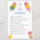 Summer Popsicle Baby Shower Game Over oder Under Diese Baby Shower Game Card ergänzt meine süße "Popsicle Ice Cream Summer Party" Baby Shower Kollektion. Sie finden die Einladung, Beilagen, Zeichen und passende Artikel in meinem Zazzle-Shop.