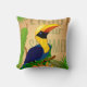 Mit diesem grünen, dekorativen Kissen können Sie jedem Zimmer in Ihrer Zuhause oder Ihrem Büro eine tropische Atmosphäre geben. Es ist mit einem Hornbill, einem tropisch blauen und gelben Vogelgeflügel mit tropischen und grünen Palmen-Blätter auf beigem Hintergrund gestaltet. Dieses Kissen wird sicherlich jeden Raum beleben!