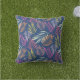 Das elegante Tropical Palm Blätter ist in Gelb, Rosa und Orange gehalten und hat einen blauen Hintergrund.