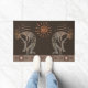 Im Southwestern Sun Kokopelli Rug Doormat Farbkombination, mit der Sie die Hintergrundfarben an Ihre Dekoration anpassen können. Kokopelli Kultur der Ureinwohner des Amerikanischen Ureinwohners. Zugeschrieben auf antike Außerirdischen oder Stammeskunst und inspiriert durch Höhlen- und Felszeichnungen. Passen Sie die Farben und Stile der amerikanischen Türmatte im Southwestern Style an. Tolle Geschenkidee.