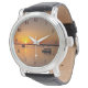 Uhr, Vintage Männeruhr mit schwarzem Lederarmband