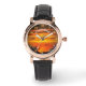 Die Malerei "Sunset Plaza Marina 2584" Collection Behalte Zeitspur mit einer benutzerdefinierten Ladys Rose Gold Vintag Watch von Ewatchfactory®. Die Damenuhr ist legiert mit einer polierten und gebürsteten Kombinationslackierung, die durch einen Ledergurt verspannt wird. Personalisieren Sie die Produktseite oder klicken Sie auf die Schaltfläche "Anpassen", um weitere Designoptionen zu erhalten. Das Design, das aus meinem Gemälde "Sunset Plaza Marina 2584" entstand, vereint einen lebhaften Sonnenuntergang mit Streifen in Orange und Rot, die den Himmel füllen, gerahmt von der silhouetted Vegetation und blühenden Pflanze im Vordergrund. Die hellen Farbtöne des Himmels kontrastieren dramatisch mit den dunklen Konturen der Landschaft und schaffen eine ruhige, aber dramatische Szene. Matching Produkte sind in dieser Sammlung verfügbar.
