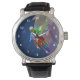 Uhr, Vintage Männeruhr mit schwarzem Lederarmband