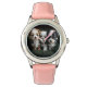 Kinderuhr aus Edelstahl mit rosa Lederarmband