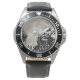 Herrenuhr aus Edelstahl mit schwarzem Lederarmband