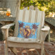 Dieses festliche Kissen im Freienkennzeichnet eine Silhouette einer Frau, die ein Surfbrett reitet, das umgeben wird durch Palmen und tropische Blumen"