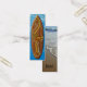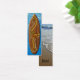 Inspiriert durch die Boardshorts und Aloha-Shirts der 60er Jahre, kombiniert dieses kühn gefärbte Muster Wettkampfstreifen, Hibiskus und eine Palmeninsel. Das Muster fällt in das natürliche Holz des Surfbrettes. Passen Sie das Lesezeichen mit Ihrem eigenen Sprichwort an oder nutzen Sie unser. Die Rückseite ist ein originelles Foto von einem schönen tropischen Strand.