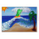 (Das Bild ist von einem grünen Engel auf einem orangefarbenen Surfbrett, das eine Welle fängt. Im Hintergrund glüht eine Sonne, am Strand weicht sanft die Palme ab. Die Welle bereitet sich darauf vor, am Strand abstürzen und die Sandfläche glätten zu können. Der grüne Engel würdigt den Erzengel Raphael, dessen Farbe grün ist und für Heilung bekannt ist. Die Sonne trägt dazu bei, das Leben zu erhalten und dadurch stärken und wachsen Pflanze wie Palmen. Der Power der Sonnenenergie symbolisiert das passende orange-gelbe Surfbrett. Der Strand ist sauber und glatt. Dieses Gemälde wurde vom "Wischen des Krebsgelenks" inspiriert. Statt dieses Gemäldes zu schreiben, wurde es offen verlassen, sodass man sich selbst auswischen kann, die Welle reiten kann, oder andere mit Flussbotschaften zum Strand, zur Wolke oder zum Himmel gehen.