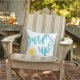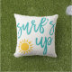 Entspannen Sie sich in Ihrem Strandhaus, im Innenhof oder im Poolbereich mit unserem sommerlichen Kissen im Außenbereich! Das niedliche Zitat-Design zeigt "surf's up" in lebendiger aquamariner handgeschriebener tropischer Typografie mit hellgelber Sonnenstudio. Das Kissen kehrt zu türkisfarbenen und weißen Streifen zurück.