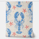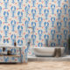 Surreal Animal Design mit Hummer Muster im Blockdruckstil. Vintage Tiere Tapeten mit blauen Hummern.