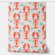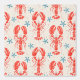 Surreal Animal Design mit Hummer Muster im Blockdruckstil. Vintage Tiere Tapeten mit roten Hummern.