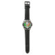 Uhr, Vintage Männeruhr mit schwarzem Lederarmband