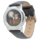 Uhr, Vintage Männeruhr mit schwarzem Lederarmband