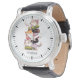 Uhr, Vintage Männeruhr mit schwarzem Lederarmband