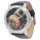Uhr, Vintage Männeruhr mit schwarzem Lederarmband