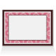 Eleganter Kuchen mit Bandbogen des Blickes 3D und Umbauten über einem rosa Damast drucken.