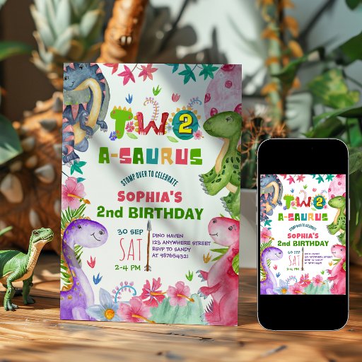 Süße Mädchen-Dino 2. Geburtstagseinladung Einladung