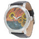 Uhr, Vintage Männeruhr mit schwarzem Lederarmband