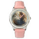 Kinderuhr aus Edelstahl mit rosa Lederarmband