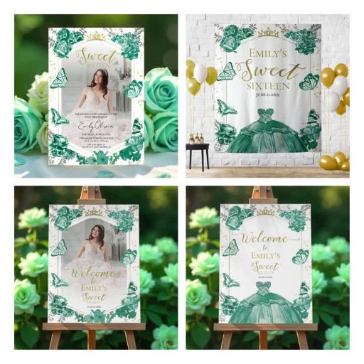 Sweet 16 Foto Einladung Emerald Green Butterfly