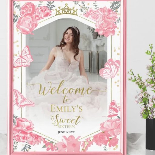 Sweet 16 Foto Willkommensschild Butterfly Pink Blü Poster