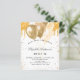 Für eine elegante Sweet 16, 16. Geburtstagsfeier. Ein schick weißer Hintergrund. Dekoriert mit Imitaten Gold Glitzer Tropfen, Farbe Tropfen Look und Ballons. Personalisieren und fügen Sie Namen, Alter und Party Details hinzu. Der Name wird mit einem handgeschriebenen Stilskript geschrieben