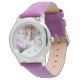 Uhr, Kinderuhr aus Edelstahluhr mit lila Lederarmband