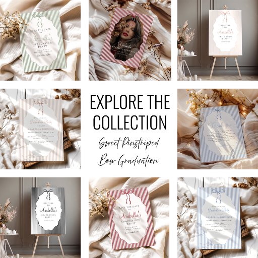 Sweet Pinstriped Beige Bow Joint Graduation Einladung