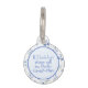 Die blauen, blauen und dunkelblauen Blumen verleihen diesem Tier-ID-Anhänger ein elegantes Design. Es gibt ein Panel, in dem Sie die Leine mit dem Namen Ihres Welpen oder Kätzchens in blauer Schrift personalisieren können. Auf der Rückseite haben Sie die Möglichkeit, den Namen und die Nummer einzutragen, um anzurufen, ob Ihr Haustier verloren gehen soll. Die Bandana hat eine verstellbare Schnalle und einen passenden Gurt.