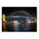 Sydney Harbour Bridge in der Nacht - leere Grußkarte. Vollständig anpassbar. Die Sydney Harbour Bridge ist eine Stahlbrücke durch die Bogen-Brücke über den Hafen von Sydney, die den Eisenbahn-, Fahrzeug-, Fahrrad- und Fußgängerverkehr zwischen dem zentralen Geschäftsviertel von Sydney (CBD) und der Nordküste befördert. Die beeindruckende Aussicht auf die Brücke, den Hafen und das nahe gelegene Opernhaus von Sydney ist ein ikonisches Bild von Sydney und Australien. Die Brücke trägt den lokalen Spitznamen "The Coat Hanger" wegen ihres bogenbasierten Designs.