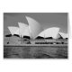 Australiens berühmtes Opernhaus in Sydney ist hier in einem Schwarz-Weiß-Bild zu sehen.