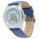 Kinderuhr aus Edelstahl mit blauem Lederarmband