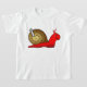 Eine Schnecke mag sich schlucken, aber lass dir das nicht. Sie sind ein großartiges Wesen. Dieses Design einer Schnecke wird im Stil eines Cartoon gemacht. Die Schnecke ist rot und die Muschel hat einen Kamin, der aus ihr kommt. Dieses Schneckendesign sieht auf diesem Girls-T - Shirt großartig aus. Perfekt für sich selbst oder als Geschenk