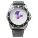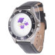 Uhr, Kinderuhr aus Edelstahluhr mit lila Lederarmband