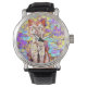 Uhr, Vintage Männeruhr mit schwarzem Lederarmband