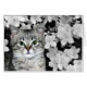 Silber Tabby Kätzchen in weiß azaleas Foto Grußkarte, denken Sie Frühling!