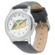 Uhr, Vintage Männeruhr mit schwarzem Lederarmband