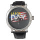 Uhr, Vintage Männeruhr mit schwarzem Lederarmband
