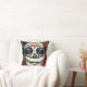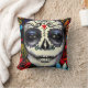 Lebhafter Blumentag des Toten Bildes auf einem schönen Kissen. Reiche, juwelenfarbene Blume umschließen das Gesicht einer Frau, das für den mexikanischen Tag der Toten gemalt wurde. Anpassbar mit der Wahl der Hintergrund- und Kissenfarbe. Nehmen Sie sich Zeit, um die Rose zu riechen...