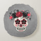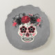 Tag des Toten Zuckerschädels mit Rose auf grauem Hintergrund.
