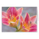 Zwei hübsche Blüten von Art Gallery Fringe Taglilie auf einem natürlichen grauen Hintergrund.