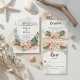 Das inspirierte Hochzeitsmenü der Tropeninsel bietet eine Auswahl an Hibiskus-, Flamingo- und Jasmin-Blume sowie Blätter aus Palmen mit Ihren Hochzeitsmenüs und Ihren Namen. Auf der Rückseite befindet sich ein abstraktes Palmenblatt, das in Beige- und Tauptönen von Chaki gehalten ist. Ideal für Strand-, Ziel- und tropische Themen.