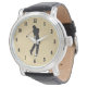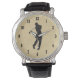 Uhr, Vintage Männeruhr mit schwarzem Lederarmband