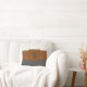 Dieses trendige, minimalgeometrische Design zeichnet sich durch einen Streifen aus Imitat, hellbraunes, braunes Leder in der Mitte, einen Farbblock aus massivem weißem Imitat Leinen auf der oberen Ebene, und einen Farbblock aus kohlegrauem Imitat auf der unteren Ebene aus. In der Mitte befindet sich ein rustikales, gestepptes Rechteck aus Leder mit einem dunkelbraunen Monogramm in der Mitte. Auf jeder Seite des Lederstreifens näht sich ein Imitat in die drei Teile, was eine stilvolle Bauernstube mit dem Zuhause macht.
