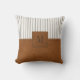 Tan Leather Strick White Linen Monogram Bauernhof Kissen