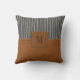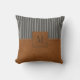 Tan Leather Striped Grau Linen Monogram Bauernhof Kissen