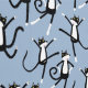 Fun tanzt schwarz-weiß tuxedo Katzenmuster auf einem blauen Hintergrund. Ideal für Liebhaber von Tieren, Katzen und Haustieren. Originelle Kunst von Nic Squirrell.